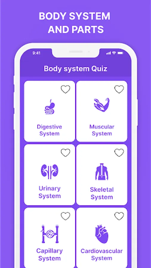 Human body systems & Organs app also has quizzes on Body organs and systems. Quiz on Digestive system, Muscular System, Urinary system, skeletal system, capillary system, cardiovascular system, endocrine system, and lymphatic system. Quiz on Eyes, Teeth, Pancreas, Skin, Teeth, Brain, Anus, and Heart and kidney anatomy available in offline.