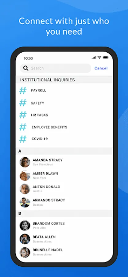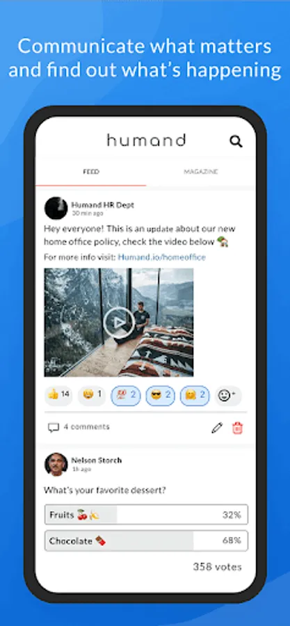✓ Social Community Feed. Communicate what matters 💬. Post and read announcements, see reactions and comments from everyone ❤️️. Have instant targeted reach to all the collaborators with push notifications in a unified organization News Feed