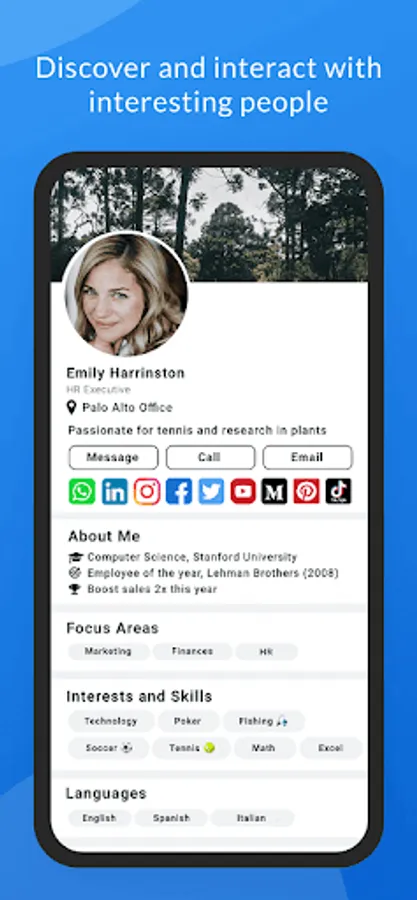 ✓ People Profiles. Discover 🔍 people with common interests in your organization and interact with them