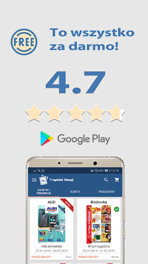 The current newsletter, including promotions, from: Biedronka, Lidl, Netto, Kaufland, Tesco, Pepco, Auchan, Carrefour, Rossmann, Makro, Selgros, Aldi, Media Markt, Mcdonald, Intermarche, Neonet, KFC, Reserved, Cropp and House, Saturn, Żabka, Media Expert, Bricomarche, Aldi, Alma Market, Empik, H & M, Home & you, Drogeria Natura, Superpharm, OBI, Cosmetics Hebe, Piotr i Paweł, Stokrotka, Jula, Leroy Merlin, Jysk, Textil Market, Black Red White, RTV EURO AGD, E.Leclerc are just one of many discounts that you can track on a regular basis :)