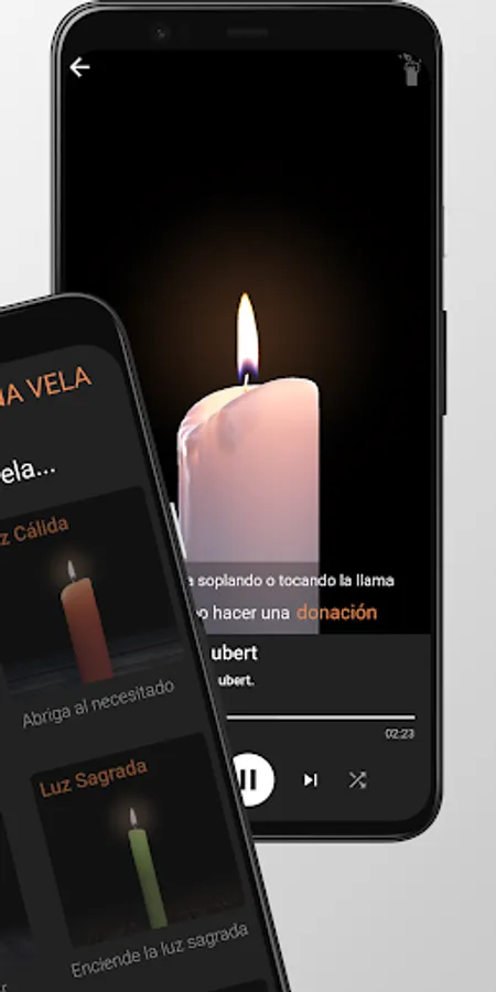 Nothing better to fall asleep than the "Sleep" utility: sounds that lull you to sleep (nature, rain, wind, relaxation) wrapped in the light of your favorite candle. And don't forget about HolyShop; the Humanlight store that helps those who need it most.