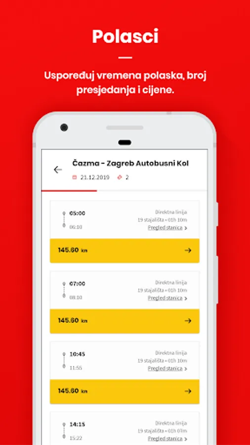 - Search through destinations within Croatia and abroad, choose from a multitude of departure times, routes and prices