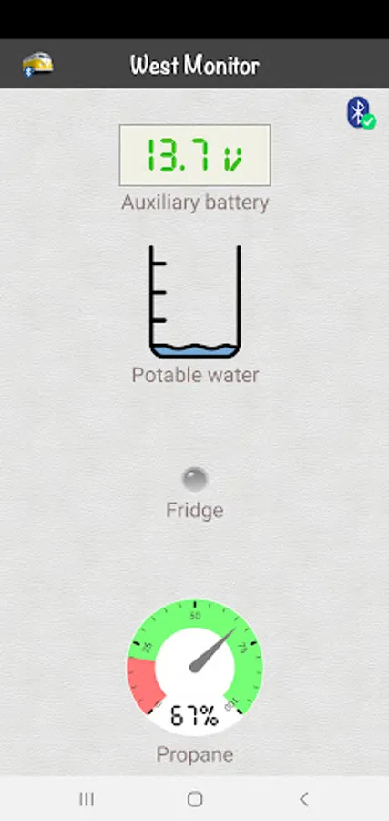 This application allows the owner of Westfalia type Vanagon from the years (1979 - 1991) or Eurovan (1995 - 2003) who has the accessory monitoring module to display on their phone information relating to the level of drinking water, waste water , battery charge status, propane level and refrigerator temperature.