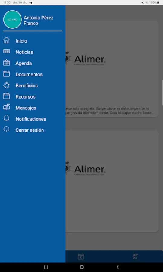 Application for Alimer workers to access their payroll, other documents, vacations and other information.