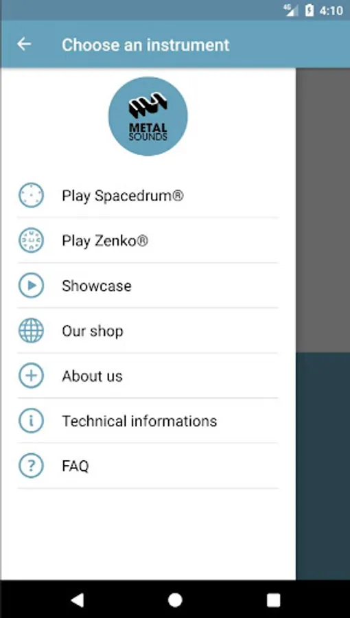 Discover Metal Sounds' instruments and try Spacedrums and Zenkos through all their versions. The Metal Sounds' application lets you choose whichever instrument you would like to try and allows you to go directly to the online shop, in order to buy it and its accessories.