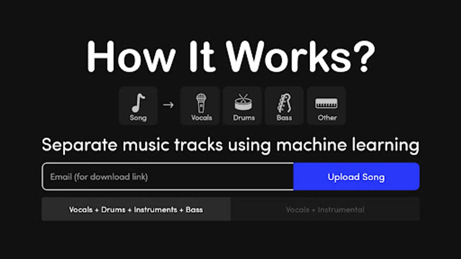 In addition, Melody ML also offers a convenient platform for users to create accounts and access various features. Melody ML allows users to separate music tracks using machine learning, such as vocals, drums, bass, and other instruments.