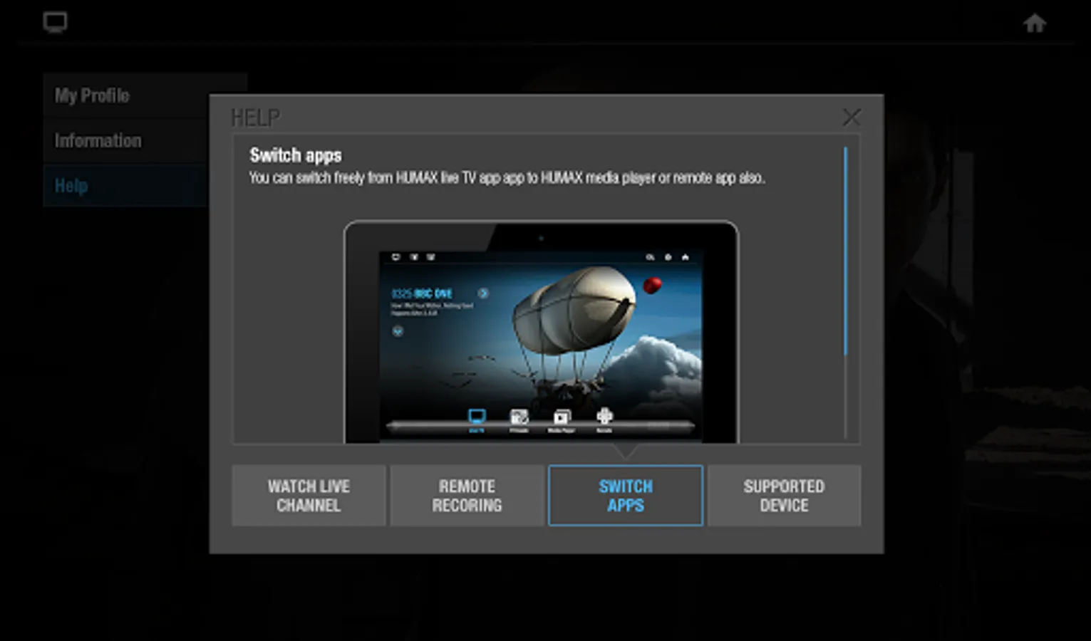 - Remote Recording with TV Guide: Scroll through TV guide on your tablet and schedule remote recordings on your HUMAX product remotely.