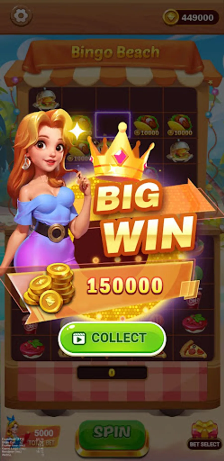 "Bingo Beach" takes you into a world of slot machines full of challenges and food temptations. Here, you can experience the excitement of gambling and the allure of food. Join this unique food trend now and experience the joy of the food world with your friends!