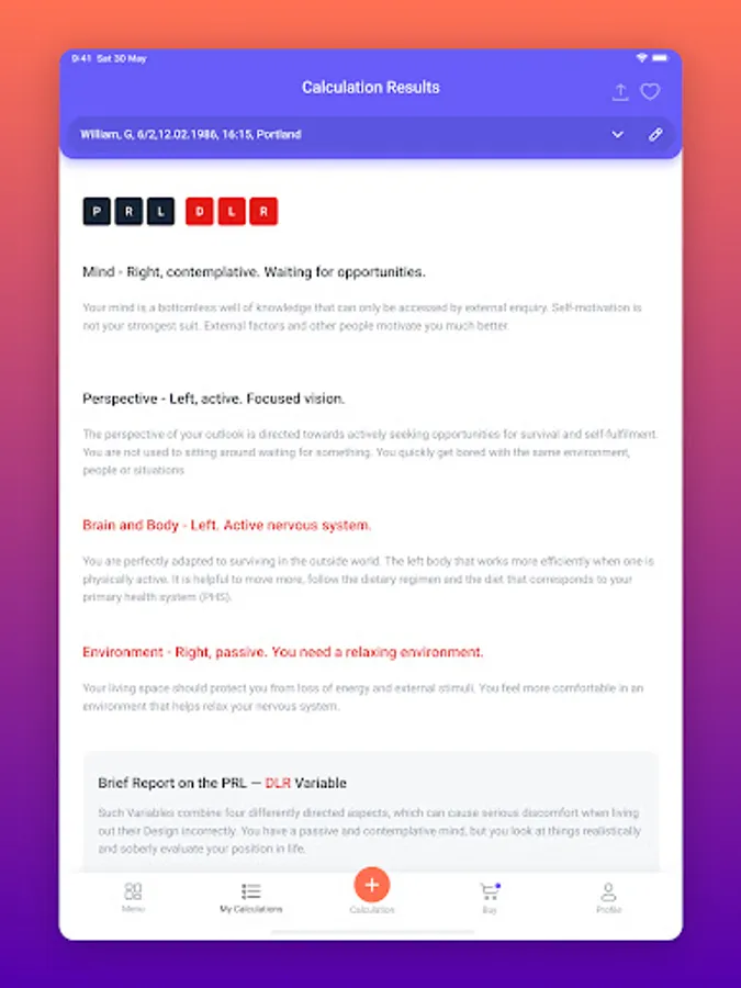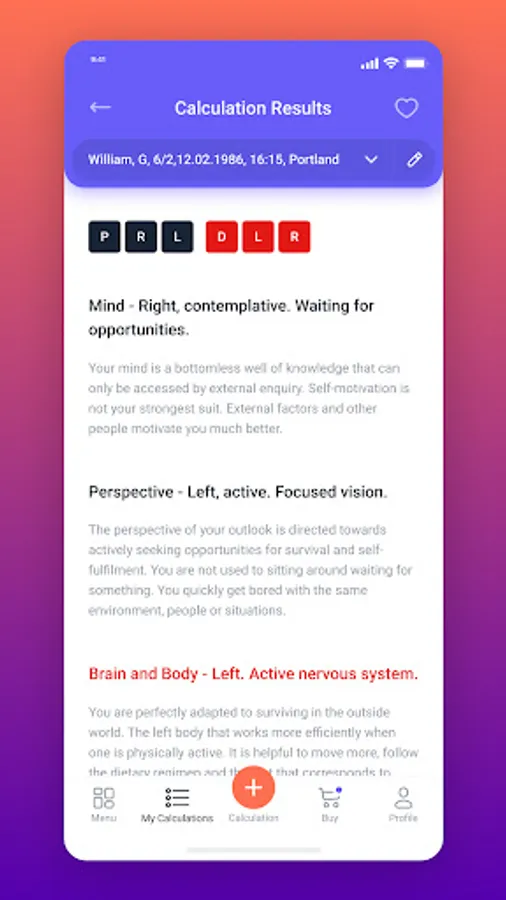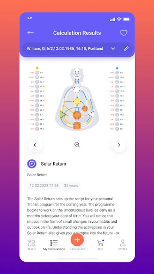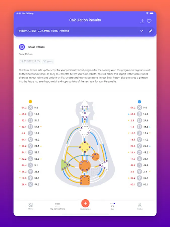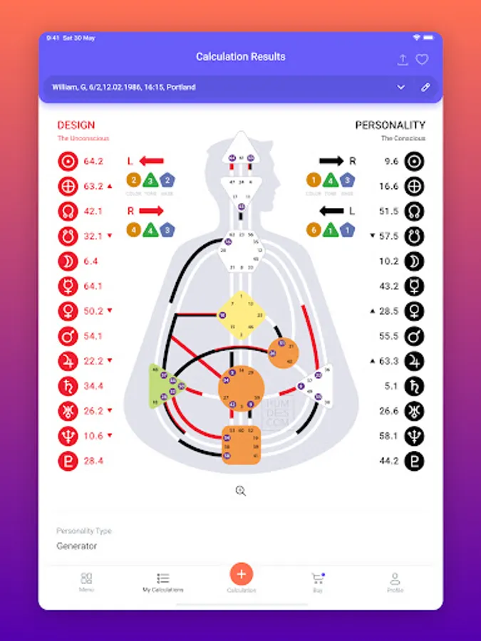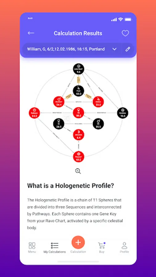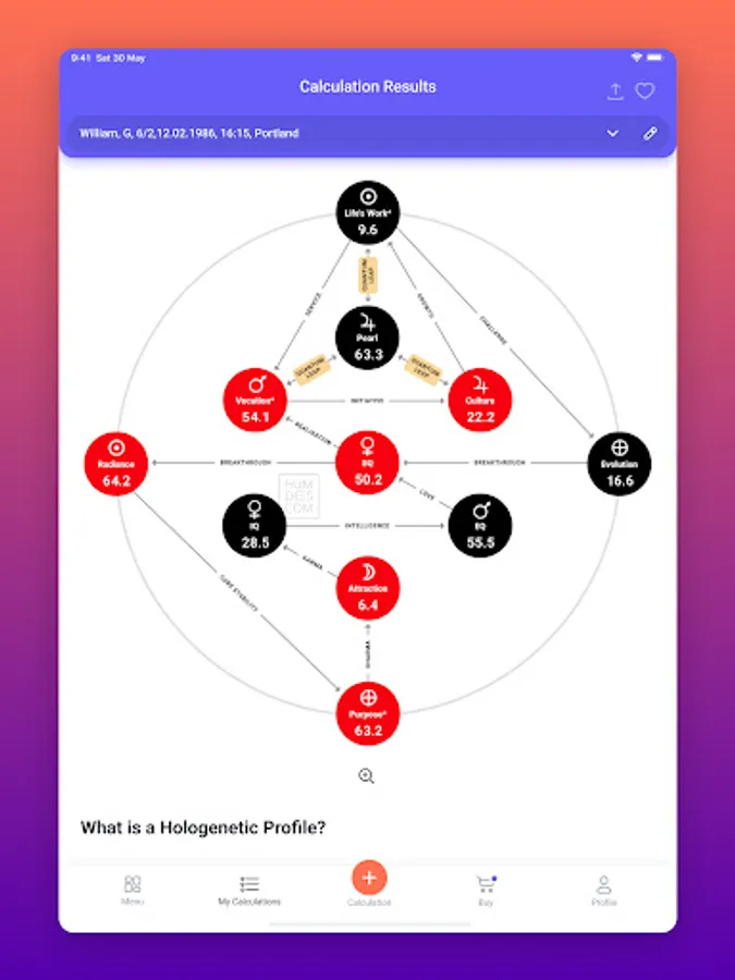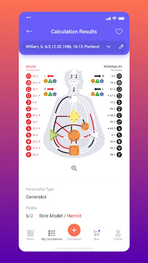 Through the mobile app you can also purchase different versions of personal chart reports in Human Design, an author's analysis report of your Hologenetic Profile, as well as a report of your compatibility with your loved one.