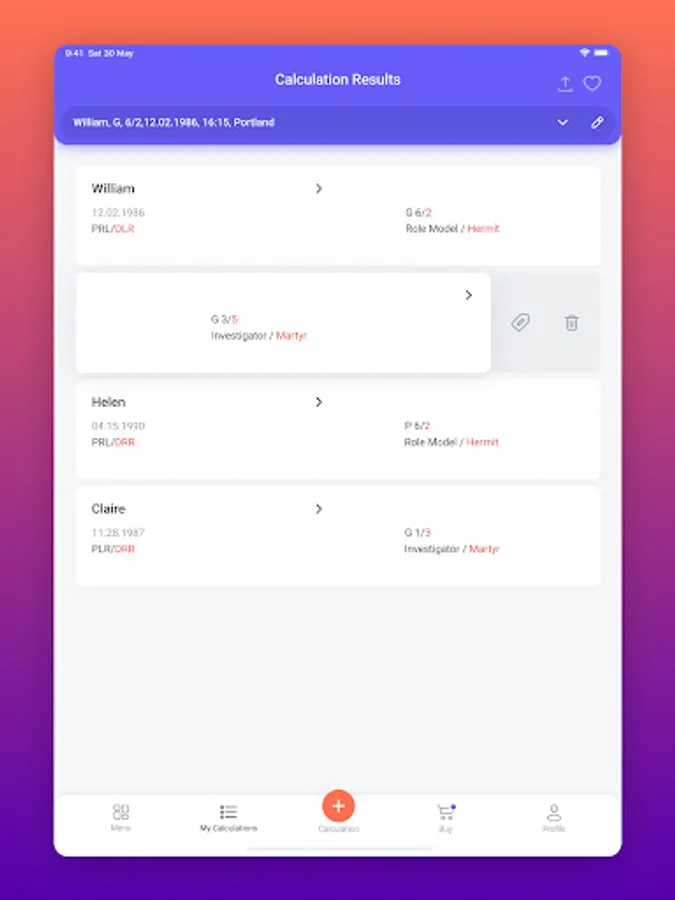 Not only do you have the opportunity to calculate Rave Charts (your own, those of your friends, acquaintances, relatives and colleagues), but you also have free access to their short reports. Convenient search and filtering by previously made calculations enable you to quickly find the Rave Сharts of the people you want and immediately see small text descriptions containing the most important information.