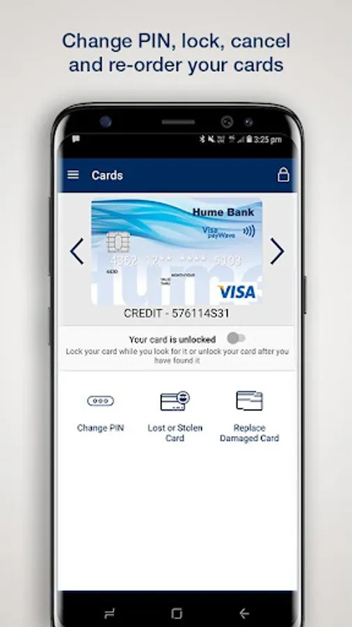 Manage your cards by locking your card when it's misplaced, or cancelling it when it's lost. Plus, change your PIN, activate new cards or order replacement cards.