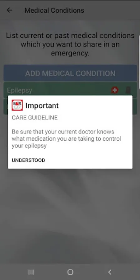 As you enter a common chronic medical condition (e.g. asthma or diabetes), SOS QR will automatically let you know of the recommended quality-of-care guideline for this condition, and if applicable, whether this condition puts you at higher risk for severe illness due to certain infectious diseases, so that you and your healthcare providers can be informed.