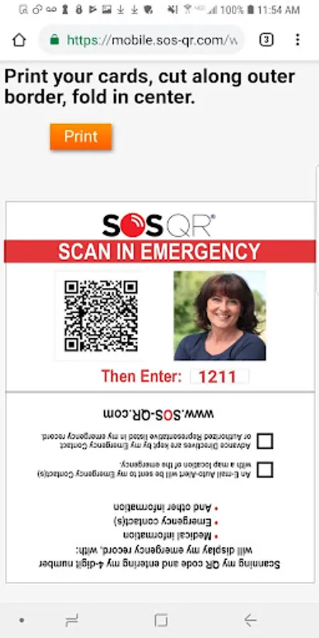 A wallet card that includes your QR code, retrieval PIN code, and your profile photo can be printed from within the application if you have a WIFI printer.