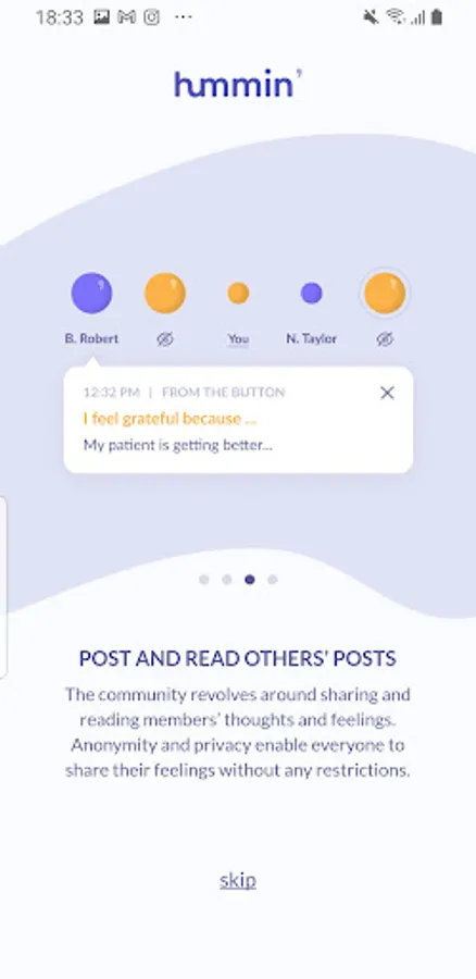 Hummin' helps you track your feelings of gratitude and vulnerability and share them with your peers. Acknowledging and sharing how you feel can improve your emotional wellbeing, increase empathy, and create a more humane workplace