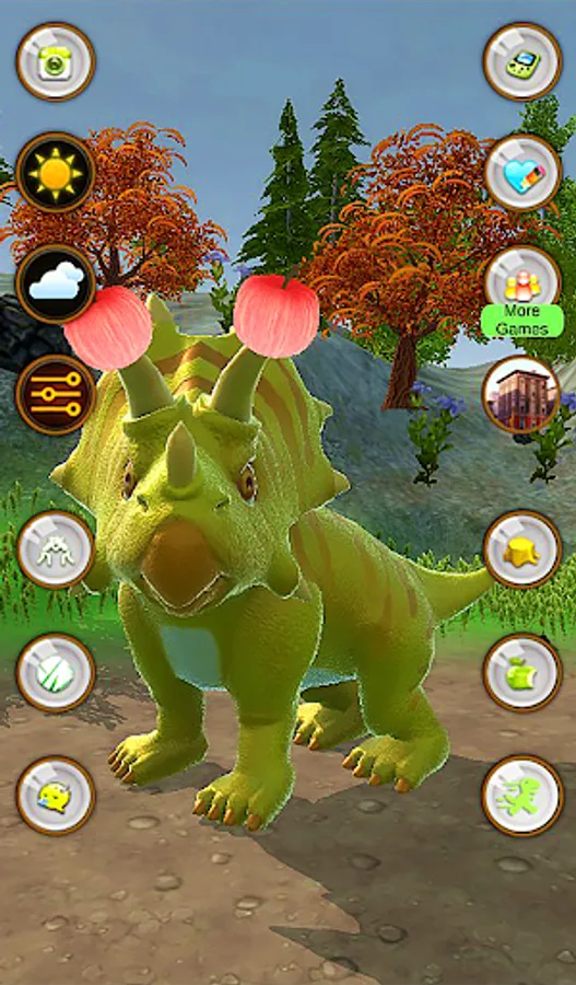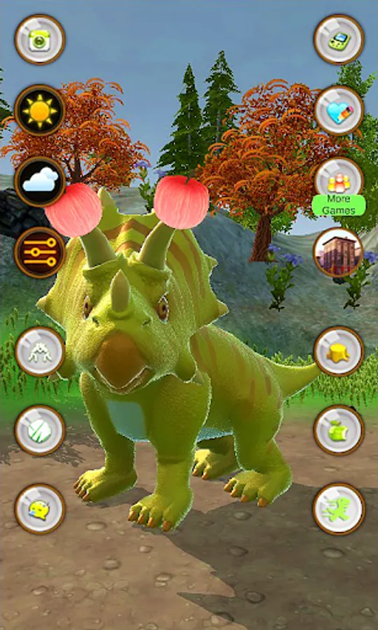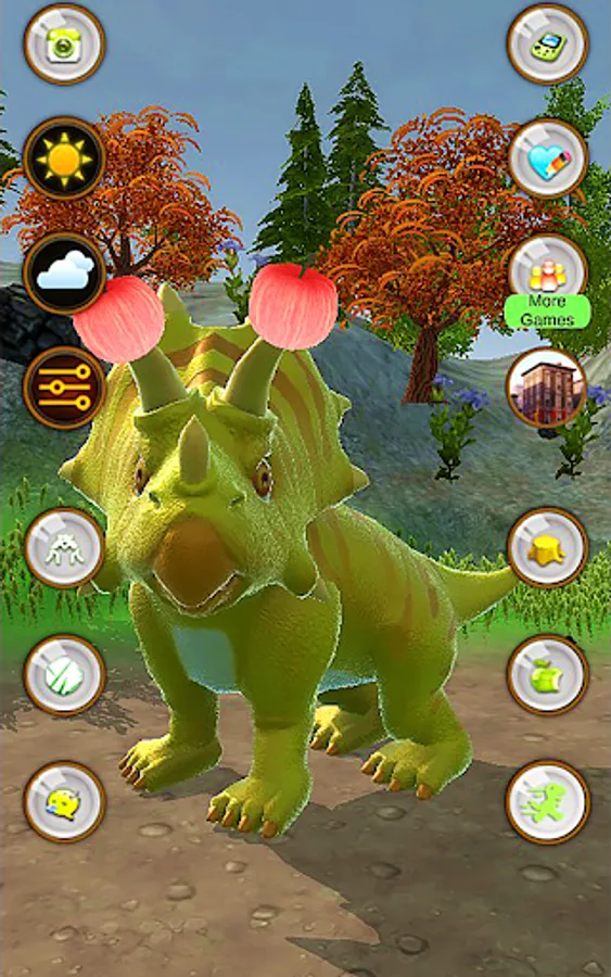 Talking Triceratops repeats everything you say with a funny voice. Triceratops is a genus of herbivorous ceratopsid dinosaur that first appeared during the late Maastrichtian stage of the late Cretaceous period, about 68 million years ago in what is now North America.Individual Triceratops are estimated to have reached about 7.9 to 9.0 m in length, 2.9 to 3.0 m in height and 6.1–12.0 tonnes in weight.The most distinctive feature is their large skull, among the largest of all land animals.