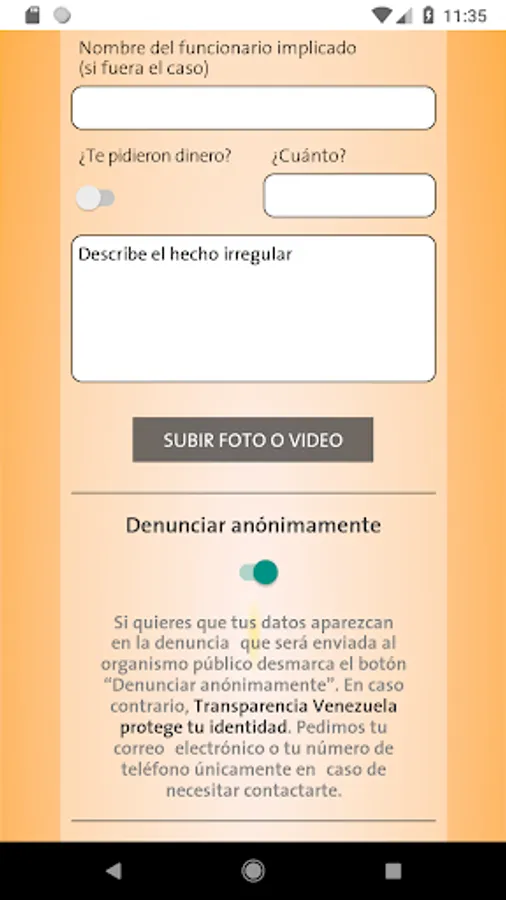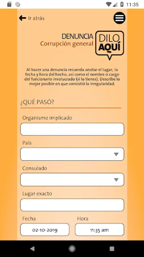 If you have been a victim or witness of corruption you must gather evidence to investigate the alleged crime. Send us your complaint with this App to analyze your case and help you process your complaint to the corresponding agency. It's free and confidential.