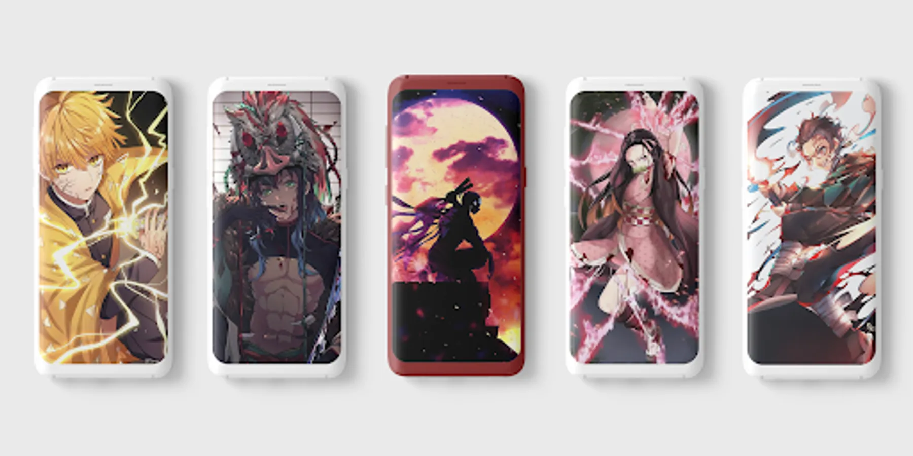 Compared to other Kimetsu no Yaiba wallpaper apps, this app gives you all the albums of each character: Tanjiro Kamado, Nezuko Kamado, Zenitsu Agatsuma, Inosuke Hashibira, all of Hashira, Giyu Tomioka, Shinobu Kocho, Kyojuro Rengoku, Mitsuri Kanroji, Obanai Iguro, Sanemi Shinazugawa, Gyomei Himejima, Tengen Uzui, Muichiro Tokito, Kanao Tsuyuri, Demons, etc.