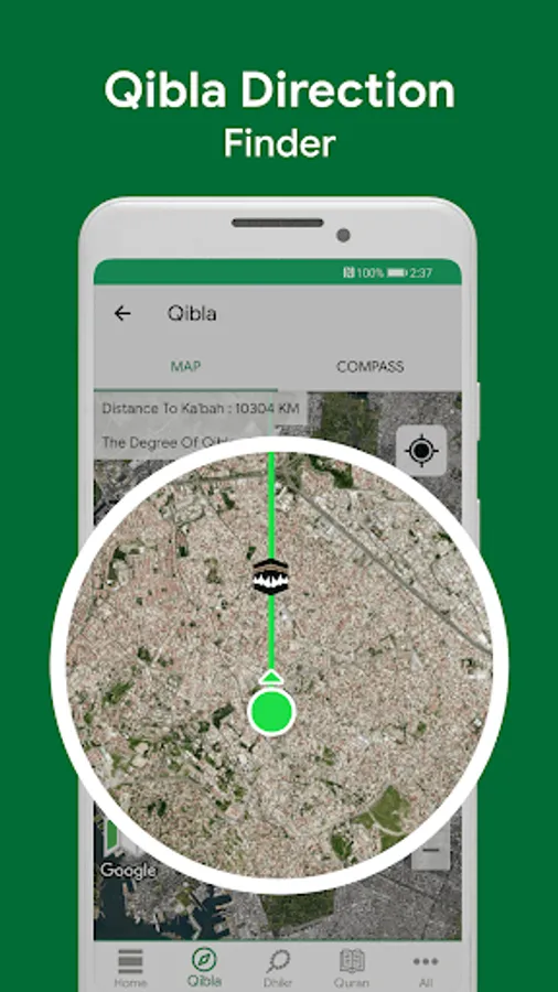 You can find Mecca and Kaaba on the map mode, and you can determine the direction in the most accurate way with the help of qibla compass to your location.