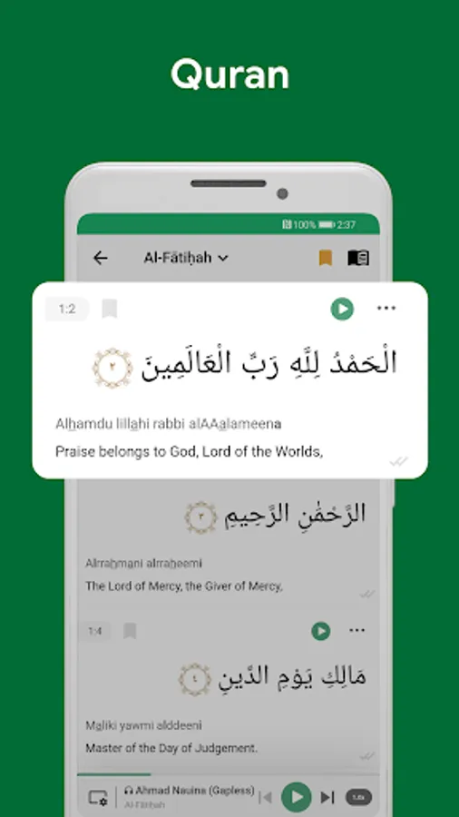 You can listen to the Holy Quran from 6 different reciters. It is easy to follow the verses due to the highlighted display of the verses while Quran audio is being streamed. In addition to the list mode, you can go to the Juz, Surah, Verses, and Prayer you want with quick access. You can change the text size and templates as you wish.