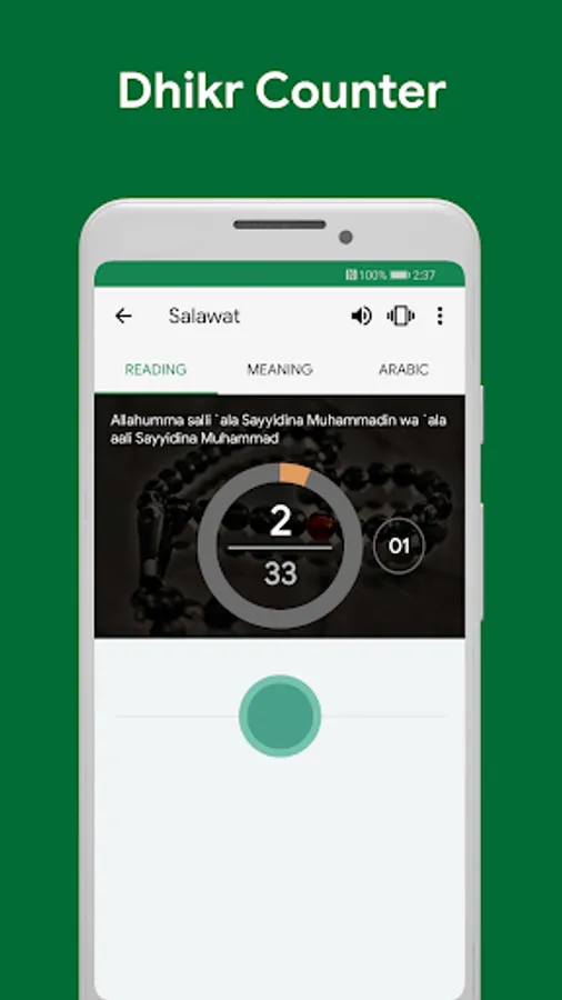 Besides its main features, Muslim Assistant has many different details. One of them can be shown as the Dhikr counter.