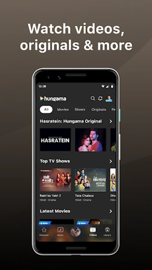Forget the hassles of switching between apps for Music and Movies. Get 30 Million+ songs, 8,000+ movies, Original Shows, Music Videos & much more in the New All in One Hungama!