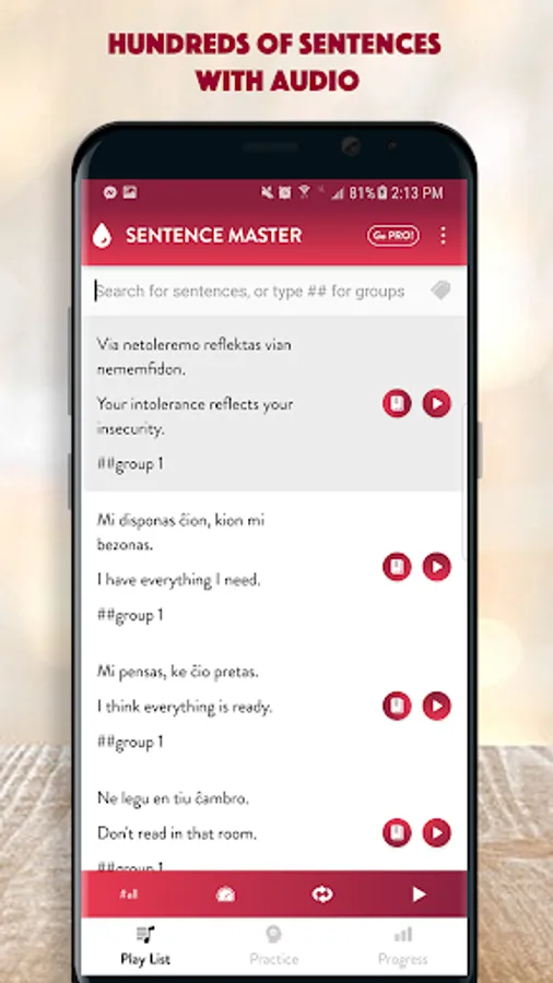 The app provided you with thousands of common sentences used in everyday life, with audio for each sentence.