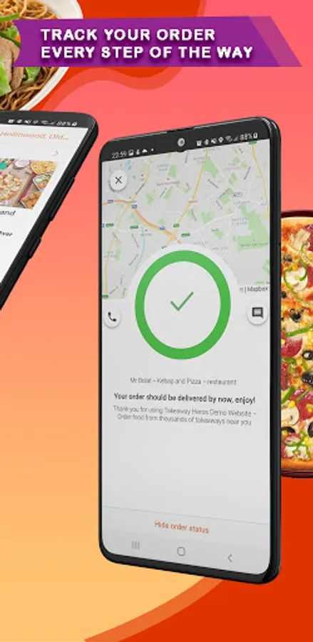 The built in GPS enables you to see restaurants close to you, so wherever you are a takeaway is only a tap away.