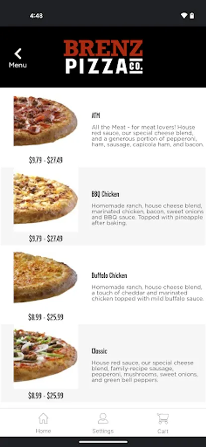 At Brenz, every ingredient, from sauce to crust, is meticulously and lovingly prepared to wow your taste buds. We take the time to do things right. Our dough is handcrafted on the premises (nothing frozen here), then carefully aged in-house for at least 24 hours for peak flavor. We make our sauce here as well. We buy locally produced ingredients whenever possible. Our veggies arrive fresh and whole. All our pizzas get a generous portion of premium preservative-free provolone and mozzarella cheeses. Choose a gourmet favorite, or create your own mix of our freshly sliced produce and premium quality meats. Hundred year old recipes combined with modern-day flavors have culminated into pizza we think you'll love.