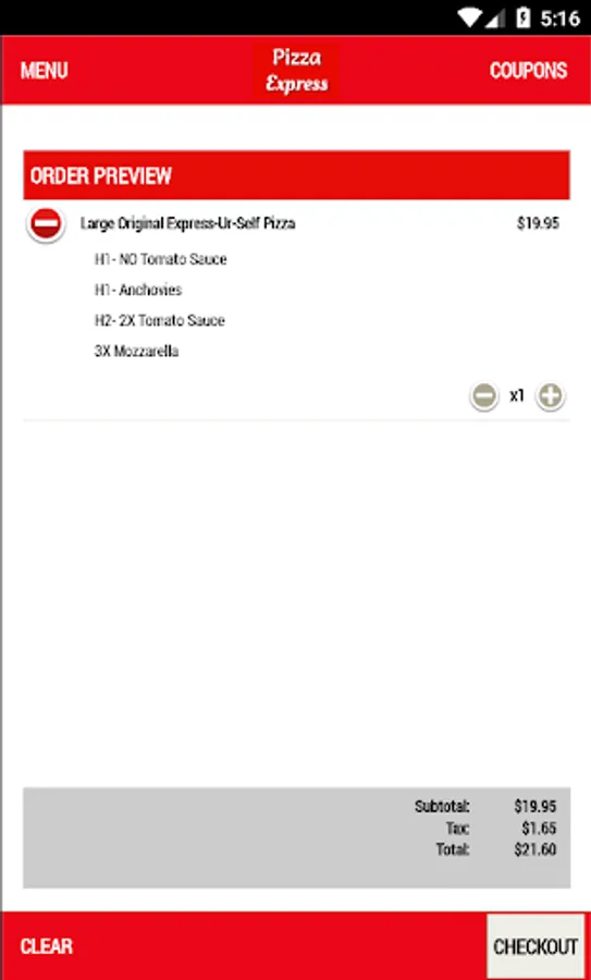 At Pizza Express, our goal is to provide our patrons with the finest ingredients together with exceptional service. We make ordering as simple as a push of a button, with our new App. Pizza, Pasta, Heroes, Appetizers, Entrees, and Desserts are all just a click away. From last minute orders to pizza parties or your next big event.....Don't Stress, call Pizza Express!