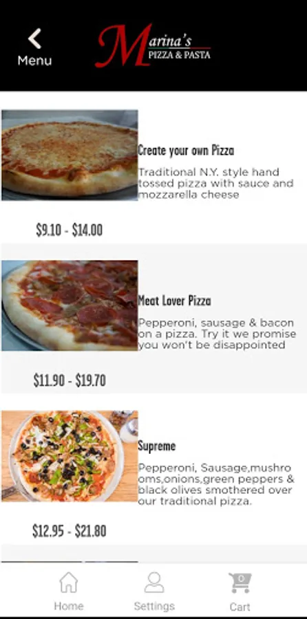 Here at Marina's our recipes date back to 1974 when the Colandrea family immigrated to NY and opened their first pizzeria. We have maintained the same level of quality, care, and love that goes into each pizza for over 40 years.