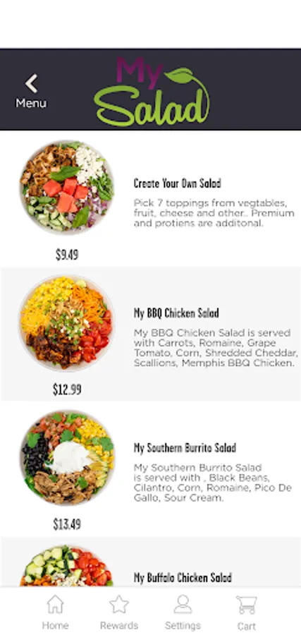 Welcome to My Salad, a family owned and operated modern day salad bar that bridges the gap between health and convenience. The My Salad app makes it easier than ever to order. You can pay with your phone, order ahead, save your favorites or add previous orders to your cart.