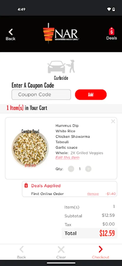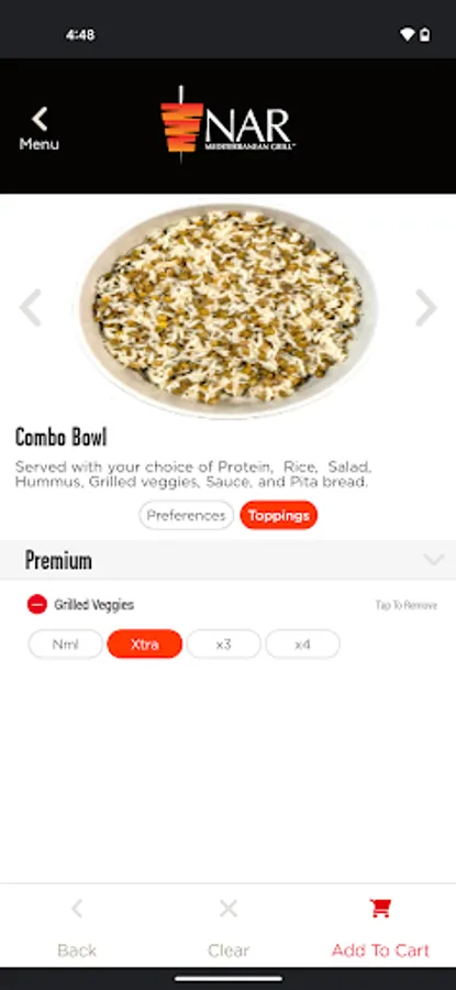 NAR Mediterranean Grill was built on core fundamentals of simplicity. We are health conscious and driven; infusing our cuisine with a variety of true authentic Mediterranean spices. Experience true Mediterranean food by having the ability to combine handpicked favorite proteins, toppings, & sauces, to build a healthy creation with thousands of possible customized options to match any taste profile