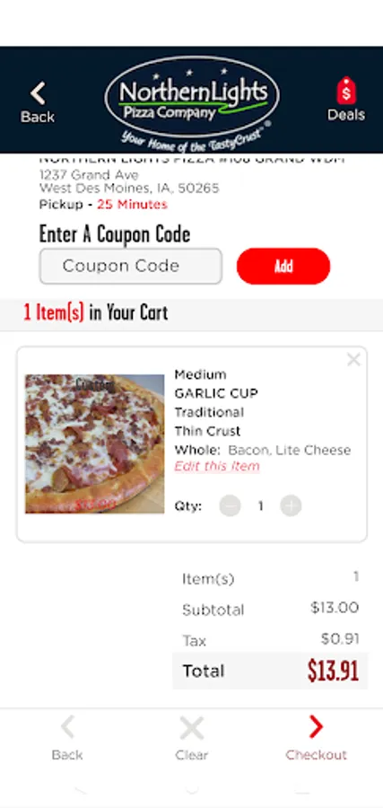 We offer a wide variety of pizza, pasta, appetizers, desserts & drinks for carryout or delivery! We start with our homemade pizza dough, choice of our zesty marinara or alfredo sauces and finally top your pizza creation with your favorite toppings. For full menu and special offers, please visit our website: www.northernlightspizza.com. We are locally owned and operated. We proudly serve the Des Moines, IA & Kansas City, MO areas. GREAT DEALS! GREAT MEALS! EVERYDAY!!