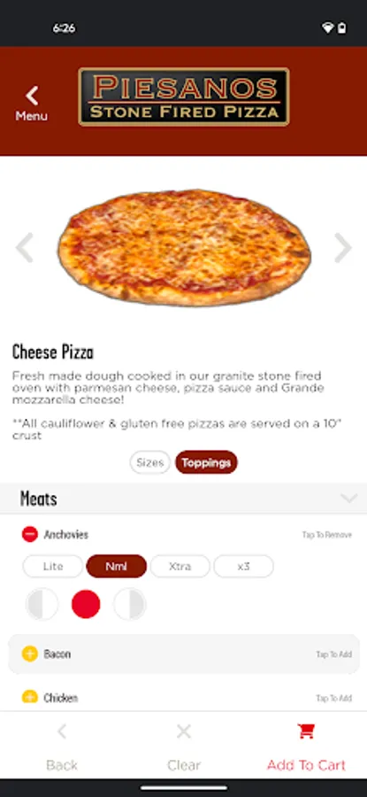 At Piesano's we are proud to use only the finest ingredients available, including Grande brand premium mozzarella, provolone & romano cheeses. Our dough is made fresh daily & all of our pizzas are baked in our unique Granit Stone Fired Pizza Oven.