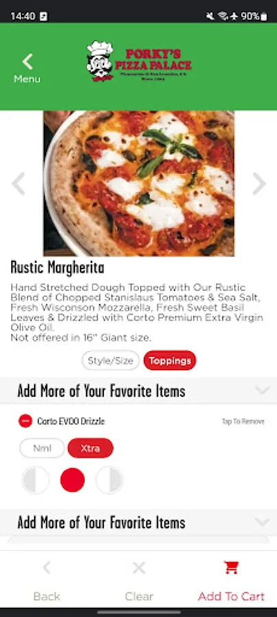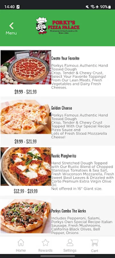 Porky's Pizza Palace is a neighborhood landmark for Great food, Great service and Good times, served up in a comfortable family atmosphere. Our Authentic Hand Tossed Pizza is prepared fresh daily beginning with our homemade recipe dough that produces our unique crust, crispy on the outside, but light and chewy on the inside. It's topped with our special recipe zesty pizza sauce, prepared with only fresh pack tomatoes, fragrant basil, oregano, spices and other secret fresh ingredients. This is topped with fresh sliced Real California Mozzarella Cheese, the Freshest Vegetables, Leanest, Juiciest Meats and the best ingredients, be they local or imported, we have found in the 45 years in business. Try our marriage of homemade dough and tangy tomato sauce together with special hand-picked fresh ingredients, delight your palate with flavor today!