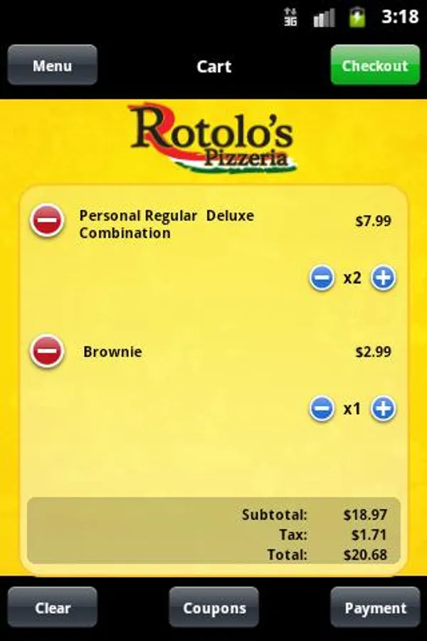 Satisfying your app-etite just got easier! Order from your favorite pizzeria conveniently from your phone or tablet PC. With the Rotolo's Pizzeria app, you can look through our menu, choose any participating location, and complete an order for dine in or takeout.