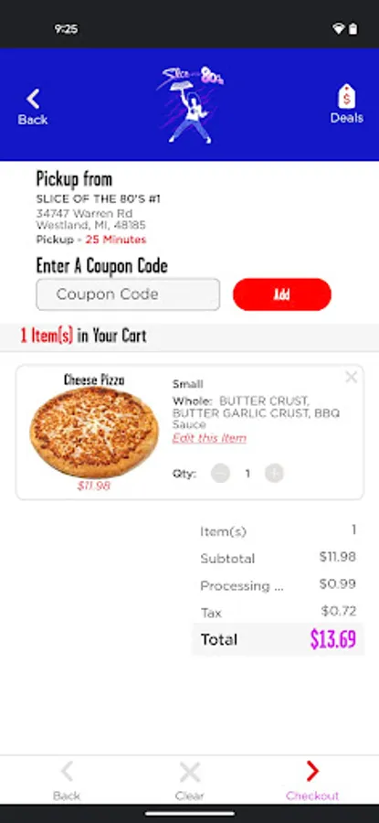 Slice Of The 80′s is a carryout/delivery restaurant that serves pizza, calzone subs, chicken wings, salads, breads and Pepsi products.