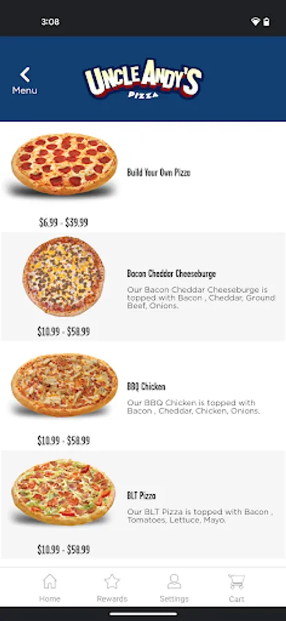 The official Uncle Andy’s Pizza app allows for easy online ordering on the go. Enjoying your favorite pizza and sides has never been easier!