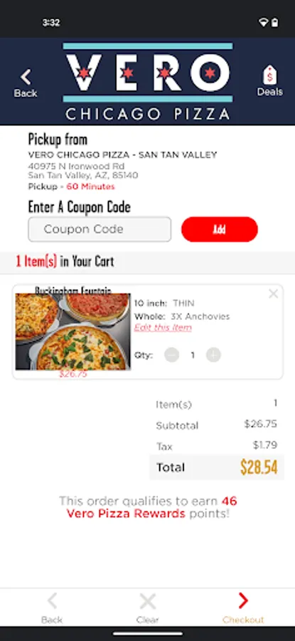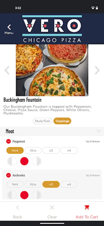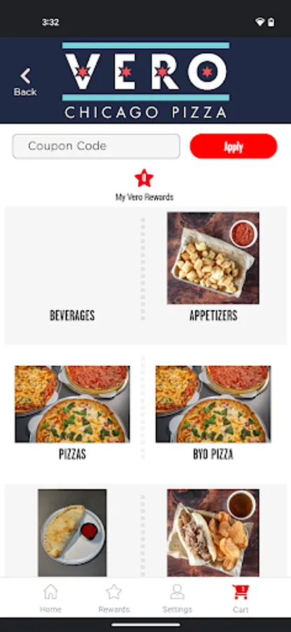 Vero Chicago Pizza ® mobile app. Order all of our delicious Windy City Cuisine and True Chicago Style Pizza right from your mobile device! Also track and earn rewards on all of your purchases within the app. Make sure to opt in for push notifications to receive daily promotions and specials going on!