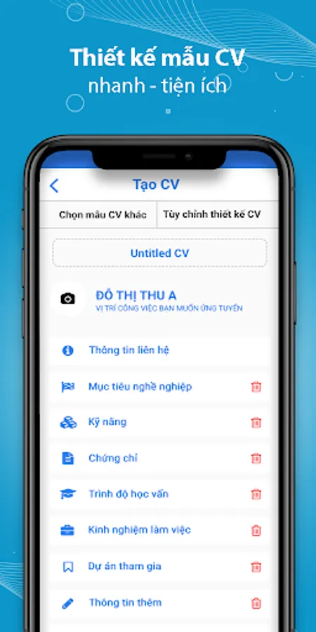 Besides, timviec365.vn also shows itself as a "player" when catching up with the latest design trends to apply to 365+ of his CV template. You can easily find a CV design style in our app, from simple, elegant CVs to more sophisticated ones with the breath of time and sophistication.