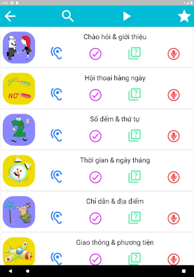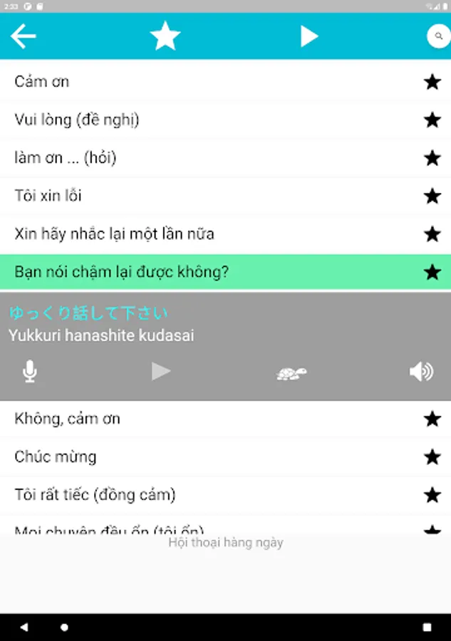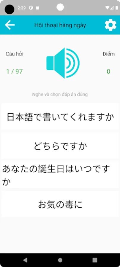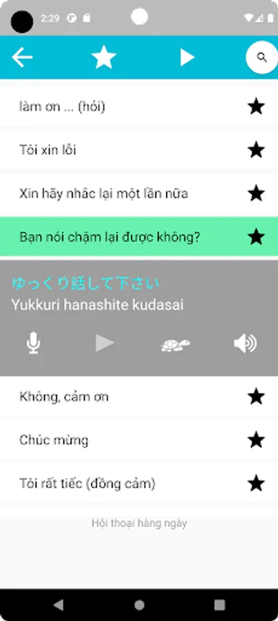 - Practice Japanese communication reflexes according to the most scientific method: you speak Japanese when you see Vietnamese sentences, then the system will automatically record, compare your pronunciation with the native pronunciation to improve pronunciation more and more accurate and faster.