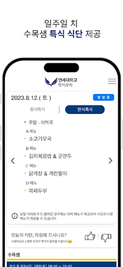 It is an app that provides information on the learning menu and convenience facility operating hours for Yonsei University Mirae Campus students who did not know the learning menu and had to go and check it every day!