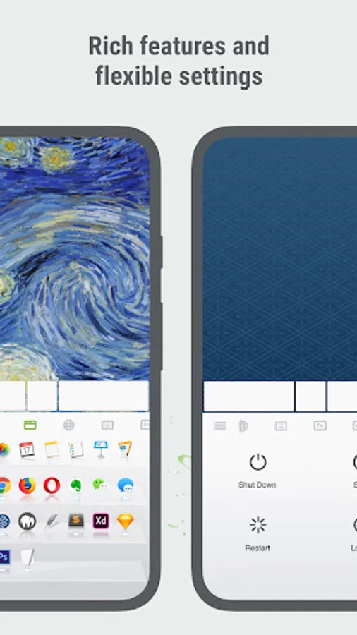 Remote Mouse™ transforms your mobile phone or tablet into an easy-to-use remote control for your computer. It mimics the functions of a wireless mouse, keyboard, and touchpad, and also offers various specialized control panels such as Media Remote, Application Switcher, Cross-device clipboard, and Web Browsing Remote, which enable you to perform specific operations more efficiently. The small features, designed for one-handed use or intuitive operations, will delight you.