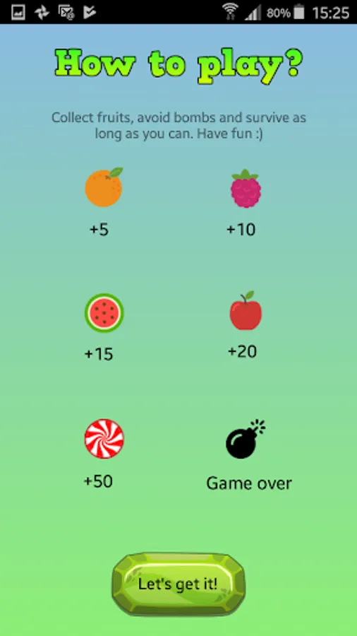 Catch fruits, unlock cute animals and have a good time! Easy to learn controls, rich visual effects make this game addictive and fun. Great to play with family and friends too! Who can get the best score in Catchy Fruits?