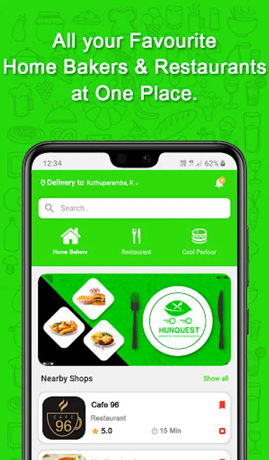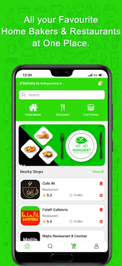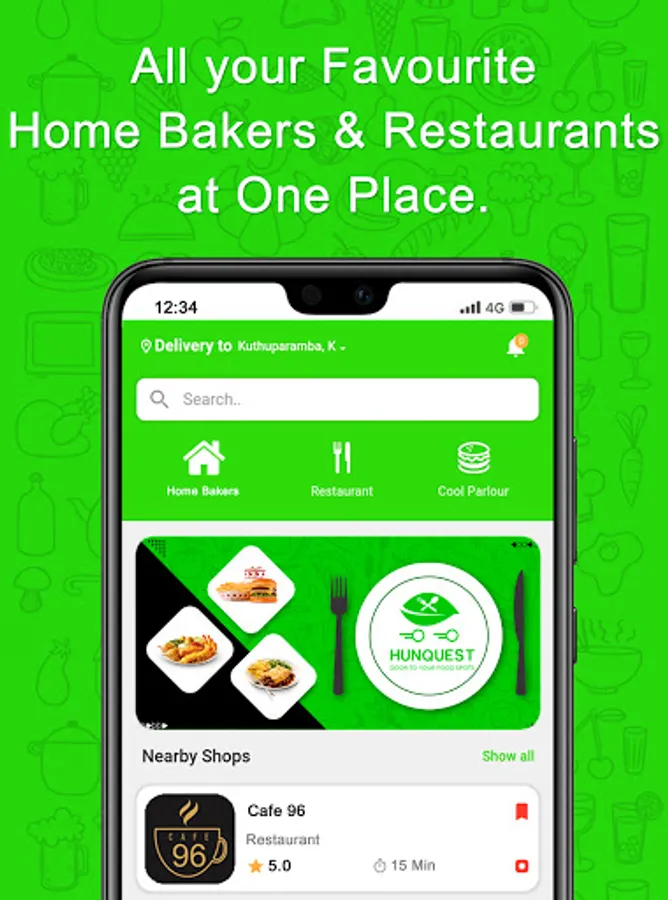Hunquest is a food delivery app in Kannur District. Customers can buy home made as well as restaurant food items at feasible rate through our Hunquest app. After getting the order, our delivery executives will deliver the ordered items to our customer's door step in minutes.