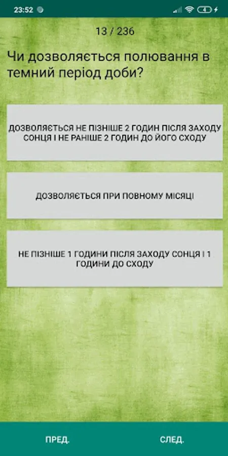 - Tests for obtaining a hunter certificate. You can choose different modes: from training to the exam.
