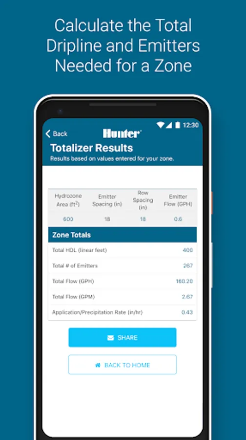 To help you make the most of your micro irrigation design and eliminate the guesswork before starting a project, take advantage of the easy-to-use Hunter Dripline Calculator. The calculator has two handy built-in features: 1) the Zone Totalizer, which calculates the total dripline and emitters needed for a zone, as well as the total flow and application rate, and 2) the Product Recommender, which gives you specific Hunter product and accessory suggestions for your project based on plant, soil, and application types. Try it today!
