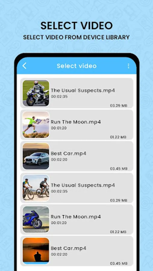 Support all video formats like: mp4, mkv, mov, mpeg, mpg, avi, flv, wmv and etc...