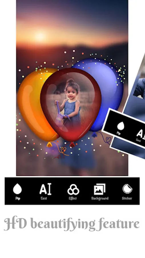 Use different PIP styles in the Camera Editor app to make your selfie and photos original and make it beautiful.