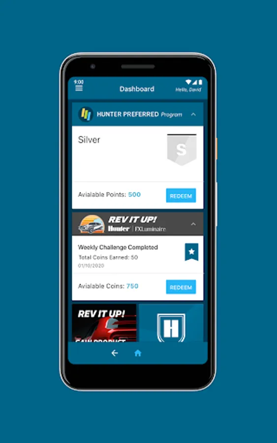 The HunterHQ app allows Hunter and FX Luminaire customers to access key information about products, training, and promotions in a central location. Hunter Preferred Program members can easily view their point balance.